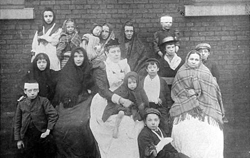 Photograph showing poor families helped by the Leeds Mission in the late 19th Century © Leeds Library and Information Service