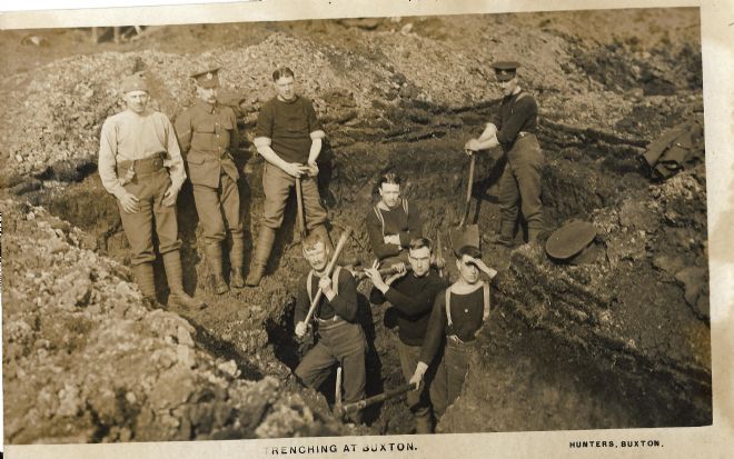 Practice trenches, such as these under construction near Buxton, were a key part of military training during the First World War.