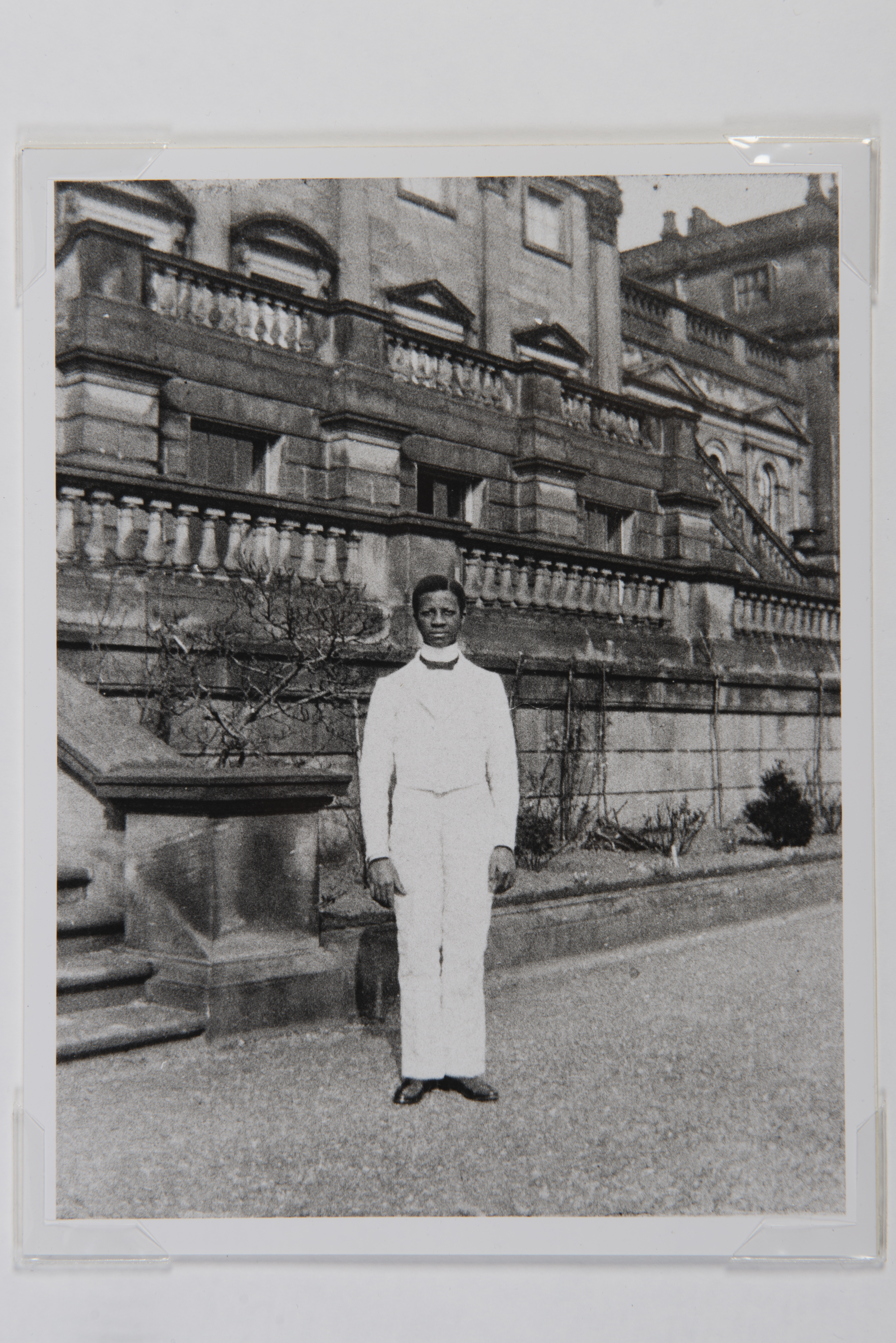 This photograph of Bertie shows him in his footman’s uniform, standing outside Harewood House. The picture may have been taken by the 5th Countess of Harewood, who was a keen amateur photographer.