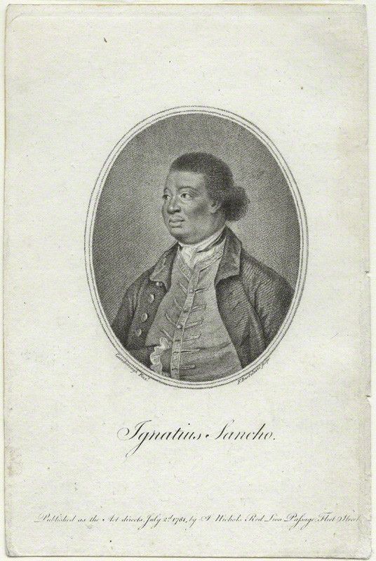 Portrait of Ignatius Sancho by Francesco Bartolozzi, published by John Bowyer Nichols, after Thomas Gainsborough stipple engraving, published 2 July 1781 (1768)