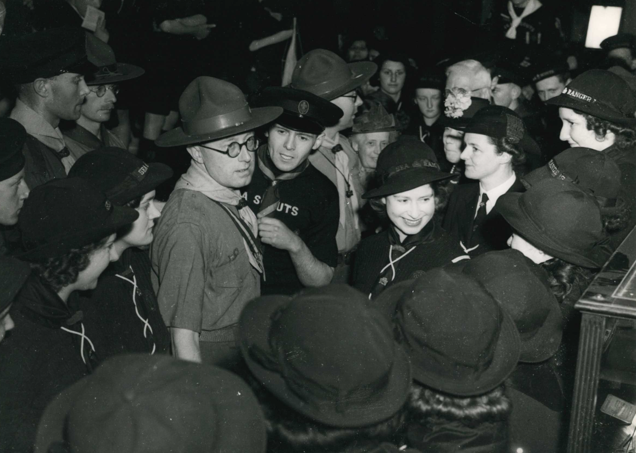 In 1943 Princess Elizabeth became a Sea Ranger and was a very popular visitor at the national Sea Scout Exhibition in 1944, as shown in this photograph. She is wearing her Sea Ranger uniform.