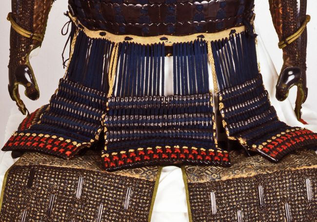 Detail from Japanese Samurai suit of armour: The Samurai, or 'Ones who serve', were warrior-nobles in Japanese society, with a strong honour code called bushido