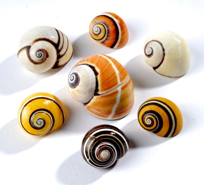 These Land Snails from Cuba all have differently coloured shells