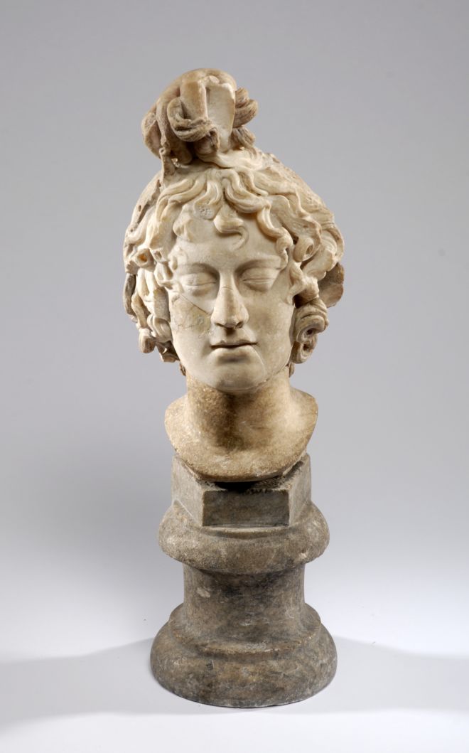 This sculpture shows the head of the Gorgon Medusa. Once a beautiful woman, she was punished by the Gods for being so vain and turned into a Gorgon. She had snakes for hair and a stare that instantly turned people to stone if they looked directly at her. You can download a version of the story of Perseus and the Gorgon (shortened for children) from the Resources page,