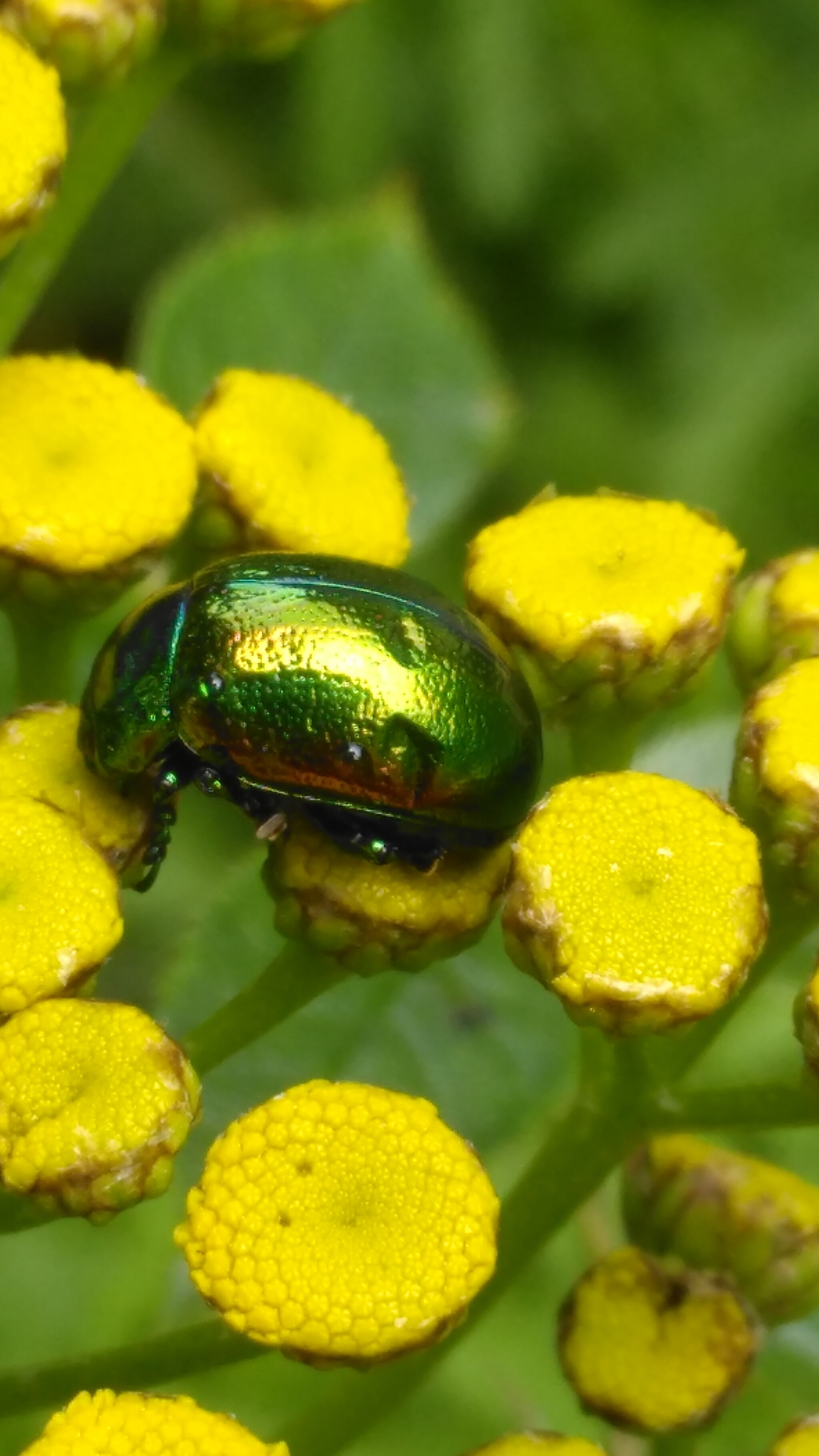 Tansy beetle on a tansy plant.