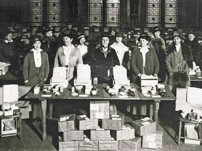 The Loyal North Lancashire Prisoners of War Help Society committee members, pictured with boxes about to be sent to prisoners in Germany
