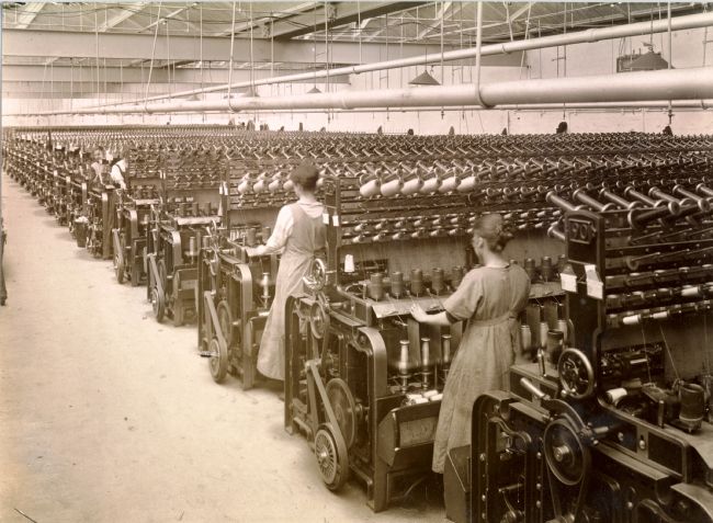 Twisting Yarn at Sir Titus Salt's Mill in the early 20th Century. Salts Mill continued as a working textile mill until 1986