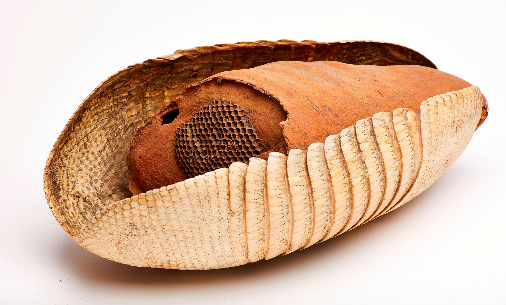 This wasp nest was built inside the armour of a dead armadillo